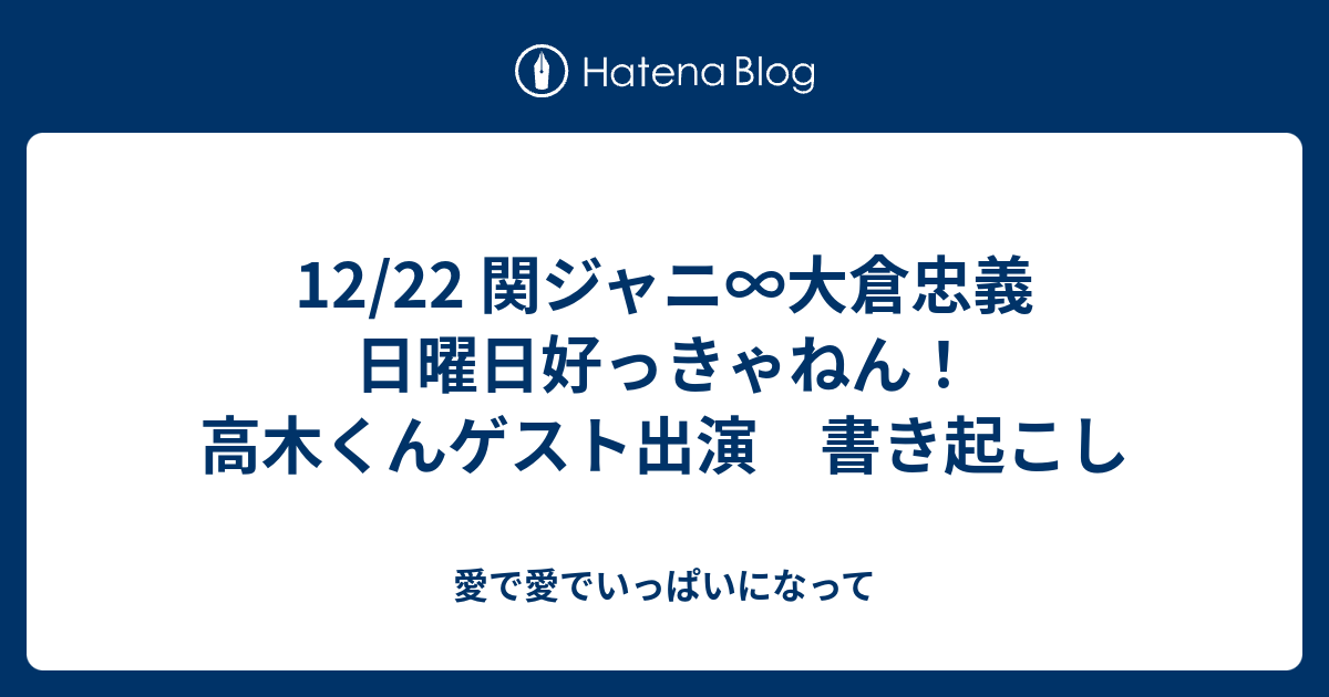 12 22 関ジャニ 大倉忠義 日曜日好っきゃねん 高木くんゲスト出演 書き起こし 愛で愛でいっぱいになって
